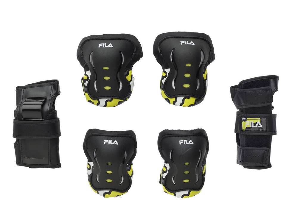 Protezione prima di tutto! La sicurezza dei giovani pattinatori è la nostra priorità: mai tralasciare la protezione di polsi, gomiti e ginocchia! Le protezioni FP junior di FILA Skates sono state sviluppate per proteggere al meglio le articolazioni degli utilizzatori. Le calotte in ABS, di disegno proprio di FILA Skates, sono asimmetriche proprio come le nostre articolazioni, presentano dei fori di aerazione e proteggono dagli urti. In particolare, i parapolsi prevedono un inserto plastico anche sul dorso della mano e del polso. Questo per prevenire l'iperestensione del polso in caso di caduta. La struttura in tessuto è confortevole ed avvolgente. Le fasce velcro elastiche in collaborazione con la calza elastica posteriore permettono di tenere in posizione la protezione e di ben regolarne la chiusura.