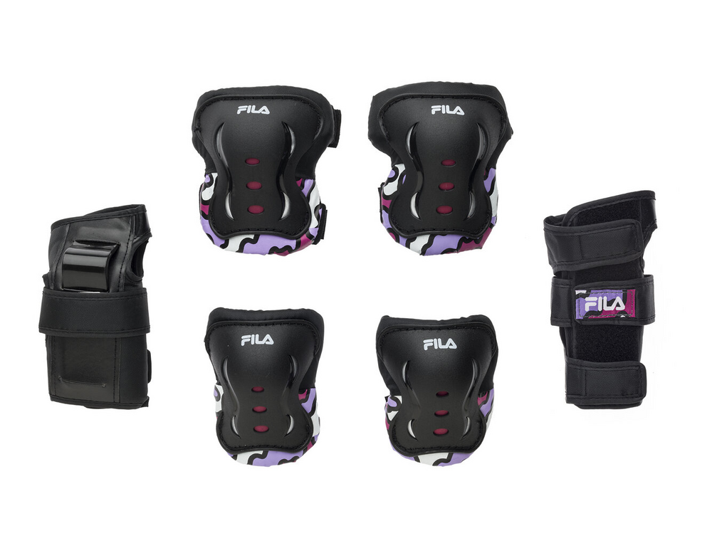 Protezione prima di tutto! La sicurezza dei giovani pattinatori è la nostra priorità: mai tralasciare la protezione di polsi, gomiti e ginocchia! Le protezioni FP junior di FILA Skates sono state sviluppate per proteggere al meglio le articolazioni degli utilizzatori. Le calotte in ABS, di disegno proprio di FILA Skates, sono asimmetriche proprio come le nostre articolazioni, presentano dei fori di aerazione e proteggono dagli urti. In particolare, i parapolsi prevedono un inserto plastico anche sul dorso della mano e del polso. Questo per prevenire l'iperestensione del polso in caso di caduta. La struttura in tessuto è confortevole ed avvolgente. Le fasce velcro elastiche in collaborazione con la calza elastica posteriore permettono di tenere in posizione la protezione e di ben regolarne la chiusura.