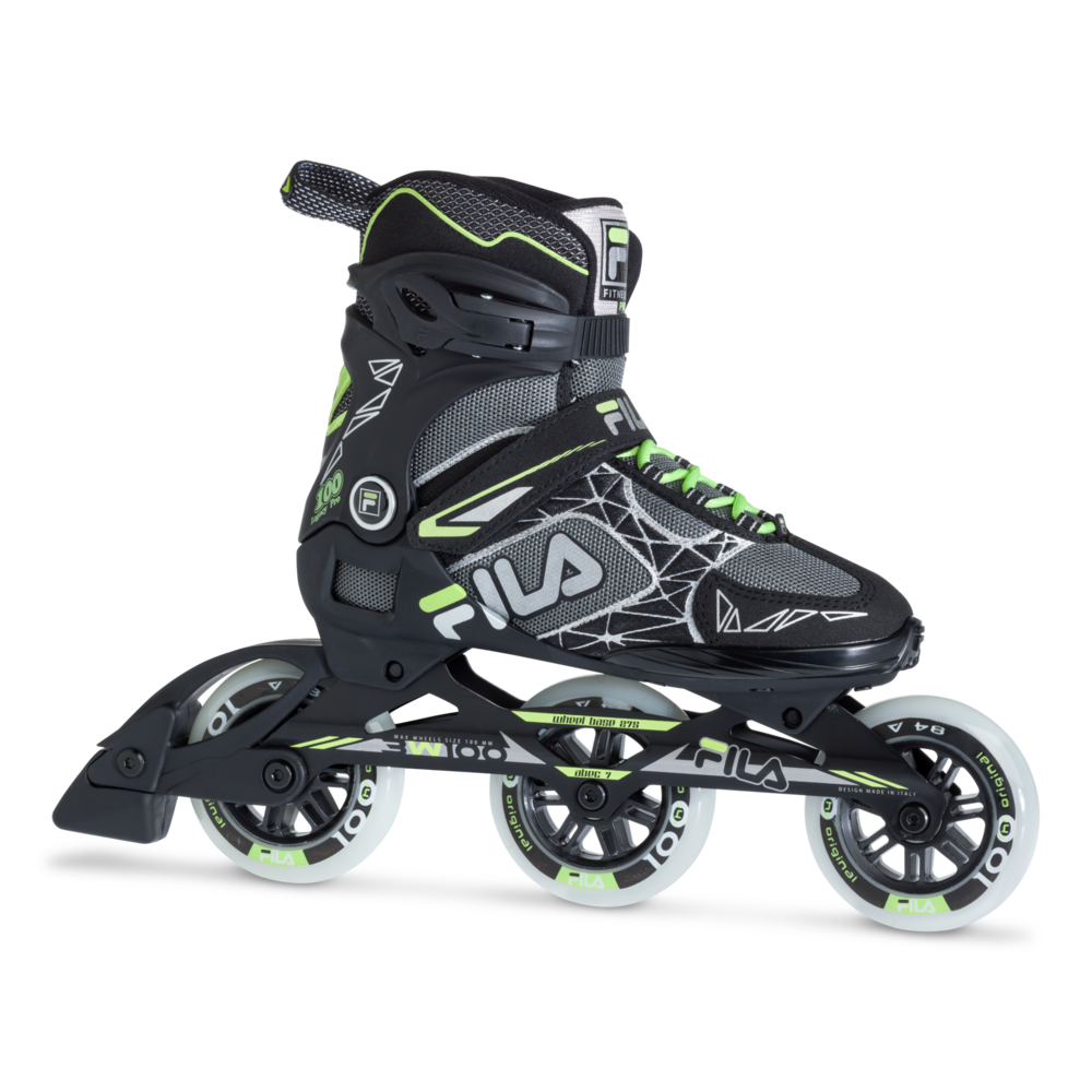 Mettiti alla prova! Legacy Pro 100 è dedicato agli skater che si allenano con regolarità e che dal loro pattino pretendono comfort e performance senza tralasciare lo stile. La scarpetta è realizzata seguendo l’ergonomia del piede ed è arricchita di imbottiture anatomiche che aumentano il comfort durante utilizzi prolungati e lunghe sessioni di allenamento. La tecnologia AirFlow™ di Fila Skates garantisce massima traspirabilità. Il gambetto sostiene perfettamente la caviglia e l’allacciatura è confortevole, semplice e altamente personalizzata grazie a lacci, fascia in velcro sul collo del piede e leva sul gambetto. Il telaio in alluminio, leggero e resistente, consente una trasmissione precisa e immediata della forza verso le 3 ruote da 100 mm, aumentando le prestazioni e la velocità nei cambi di direzione. Distanziali in alluminio e cuscinetti ABEC 7 completano la dotazione tecnica di Legacy Pro 100, un pattino fitness perfetto anche per chi percorre lunghe distanze.