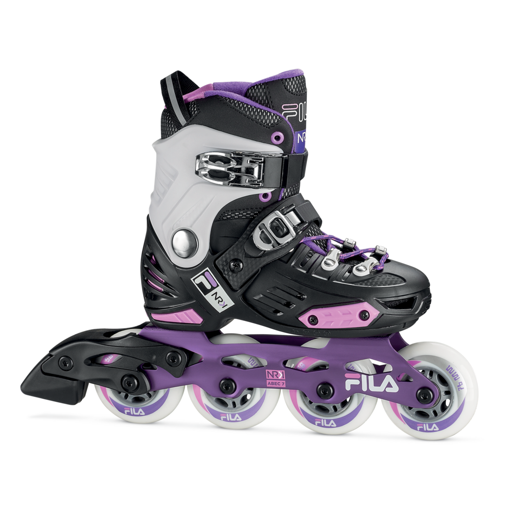 Pattina verso il successo! NRK JR è un pattino inline divertente e facile da condurre dedicato a tutti i giovani appassionati che stanno imparando a pattinare o che vogliono sperimentare trick, salti e curve mozzafiato. La calzata sportiva, lo scafo in composit e il gambetto avvolgente creano una struttura durevole e avvolgente grazie alle imbottiture anatomiche preformate che stabilizzano alla perfezione piede e caviglia e alla tecnologia Shock Absorber che sostiene il tallone e assorbe efficacemente gli urti con il terreno. La chiusura è sicura e robusta grazie ai lacci, alla leva sul gambetto e alla leva micrometrica sul collo del piede. NRK junior cresce con il piede dei più piccoli grazie a un semplice click: il meccanismo Step Jem™ di Fila Skates permette la regolazione semplice e rapida della taglia del pattino che calzerà sempre alla perfezione. Il telaio in alluminio estruso monta 4 ruote da 76mm (taglia M e L, EU 32-35 ed EU 36-39) e cuscinetti ABEC 7 per una pattinata scorrevole. Pattina verso il tuo sogno e divertiti con NRK JR!