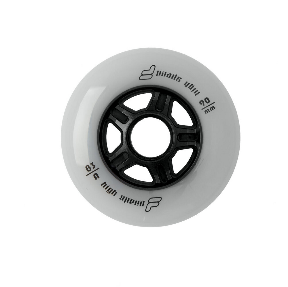 Nel pattino in linea e nel pattino quad le ruote sono fondamentali in quanto rappresentano l’unico punto di contatto con il terreno e sono il mezzo tramite il quale vengono trasferite direzione e forza del movimento. Le caratteristiche principali delle ruote sono: - il processo di produzione, - la qualità del materiale, - il diametro, - la durezza, - il profilo Per quanto riguarda il processo di produzione, possono essere iniettate (generalmente in PVC) o prodotte per colata (poliuretano). Le ruote colate in poliuretano sono di migliore qualità. Migliore è il poliuretano e più durature, veloci e performanti saranno le ruote. Il rebound, cioè il grado di rimbalzo che ha una ruota, è un elemento chiave per capire il grado di qualità del poliuretano. Le ruote con il miglior rebound sono quelle che performano meglio in assoluto. Il diametro influisce su molti fattori. La ruota piccola è migliore in accelerazione ma sviluppa una velocità minore. Consente di avere un baricentro più basso e, richiedendo un telaio di lunghezza inferiore (considerando il set up standard di 4 ruote in linea), è più maneggevole nei cambi di direzione. I principianti utilizzano solitamente ruote piccole (80mm) perché sono più bassi di baricentro, sviluppano velocità inferiori, sono più maneggevoli e sono spesso in situazioni di "fermo e vado", che richiedono immediatezza in accelerazione e in fermata. Più si diventa esperti e più si apprezzano le ruote grandi. La ruota grande è più lenta in accelerazione ma poi sviluppa più velocità e più comfort di marcia perché assorbe meglio le vibrazioni provenienti dal terreno. Con il set up a 3 ruote inoltre si ovvia al problema della lunghezza del telaio. Con 3 ruote grandi si sfrutta la lunghezza di un normale telaio a 4 ruote piccole non compromettendo quindi la manovrabilità. La durezza influisce principalmente sul grip e la resistenza all'usura. Su superfici lisce e scivolose si utilizza una ruota più tenera (78A) mentre sull'asfalto si utilizzano ruote più dure (85A). Il profilo è funzionale all'utilizzo. Chi va in rampa predilige il profilo squadrato, più stabile. I freeskater e gli hockeisti utilizzano il profilo rotondo che dà lo stesso punto di contatto con il terreno e lo stesso grip in ogni inclinazione. Il profilo ellittico è utilizzato nel fitness e nella velocità. I quad utilizzano ruote più piccole (per non creare interferenza con la scarpa durante le sterzate) e più larghe. Il tutto è intrinseco alla diversa conformazione tecnica del telaio, munito di truck sterzanti e agli esercizi praticati.