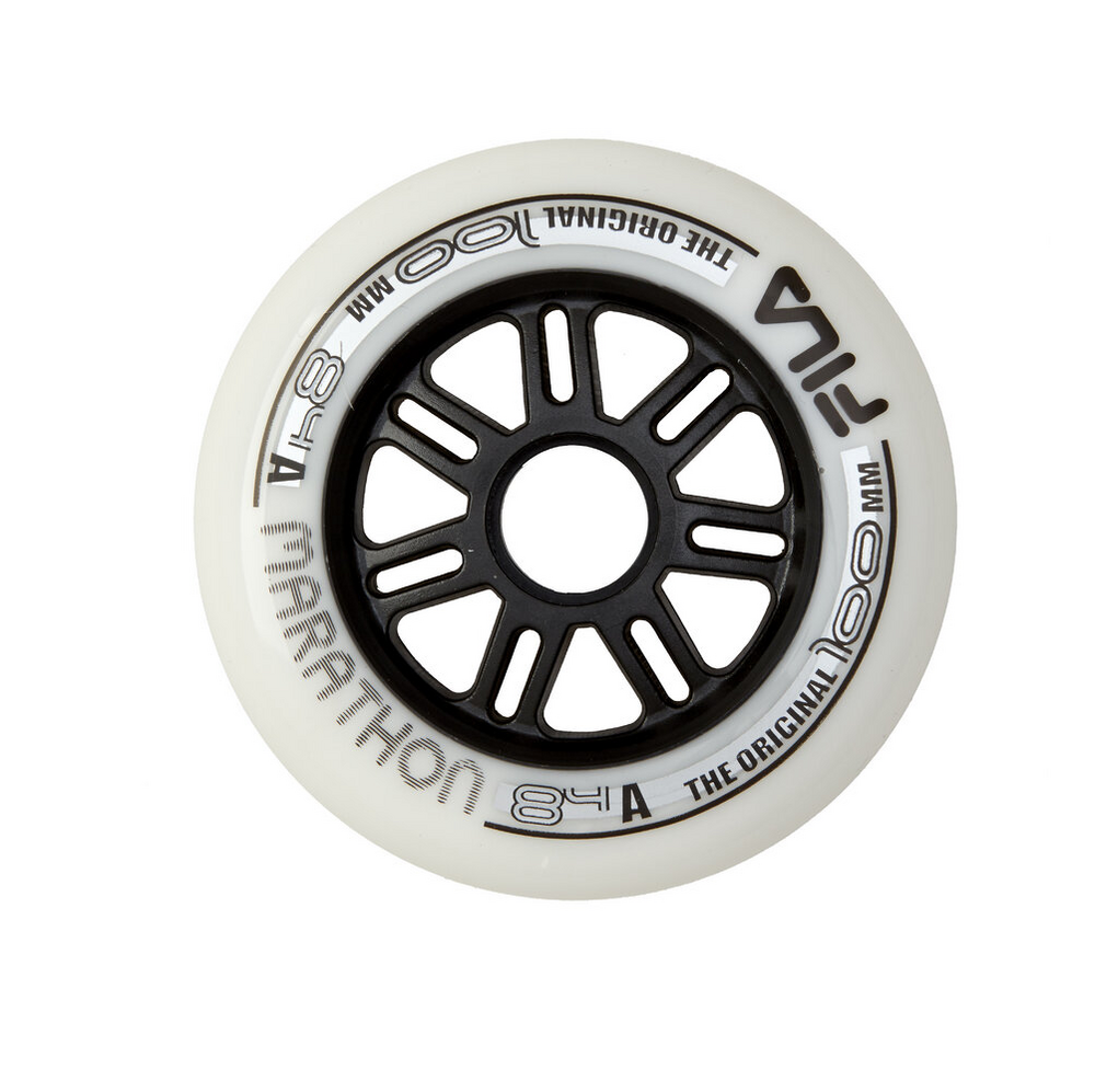 Nel pattino in linea e nel pattino quad le ruote sono fondamentali in quanto rappresentano l’unico punto di contatto con il terreno e sono il mezzo tramite il quale vengono trasferite direzione e forza del movimento. Le caratteristiche principali delle ruote sono: - il processo di produzione, - la qualità del materiale, - il diametro, - la durezza, - il profilo Per quanto riguarda il processo di produzione, possono essere iniettate (generalmente in PVC) o prodotte per colata (poliuretano). Le ruote colate in poliuretano sono di migliore qualità. Migliore è il poliuretano e più durature, veloci e performanti saranno le ruote. Il rebound, cioè il grado di rimbalzo che ha una ruota, è un elemento chiave per capire il grado di qualità del poliuretano. Le ruote con il miglior rebound sono quelle che performano meglio in assoluto. Il diametro influisce su molti fattori. La ruota piccola è migliore in accelerazione ma sviluppa una velocità minore. Consente di avere un baricentro più basso e, richiedendo un telaio di lunghezza inferiore (considerando il set up standard di 4 ruote in linea), è più maneggevole nei cambi di direzione. I principianti utilizzano solitamente ruote piccole (80mm) perché sono più bassi di baricentro, sviluppano velocità inferiori, sono più maneggevoli e sono spesso in situazioni di "fermo e vado", che richiedono immediatezza in accelerazione e in fermata. Più si diventa esperti e più si apprezzano le ruote grandi. La ruota grande è più lenta in accelerazione ma poi sviluppa più velocità e più comfort di marcia perché assorbe meglio le vibrazioni provenienti dal terreno. Con il set up a 3 ruote inoltre si ovvia al problema della lunghezza del telaio. Con 3 ruote grandi si sfrutta la lunghezza di un normale telaio a 4 ruote piccole non compromettendo quindi la manovrabilità. La durezza influisce principalmente sul grip e la resistenza all'usura. Su superfici lisce e scivolose si utilizza una ruota più tenera (78A) mentre sull'asfalto si utilizzano ruote più dure (85A). Il profilo è funzionale all'utilizzo. Chi va in rampa predilige il profilo squadrato, più stabile. I freeskater e gli hockeisti utilizzano il profilo rotondo che dà lo stesso punto di contatto con il terreno e lo stesso grip in ogni inclinazione. Il profilo ellittico è utilizzato nel fitness e nella velocità. I quad utilizzano ruote più piccole (per non creare interferenza con la scarpa durante le sterzate) e più larghe. Il tutto è intrinseco alla diversa conformazione tecnica del telaio, munito di truck sterzanti e agli esercizi praticati.