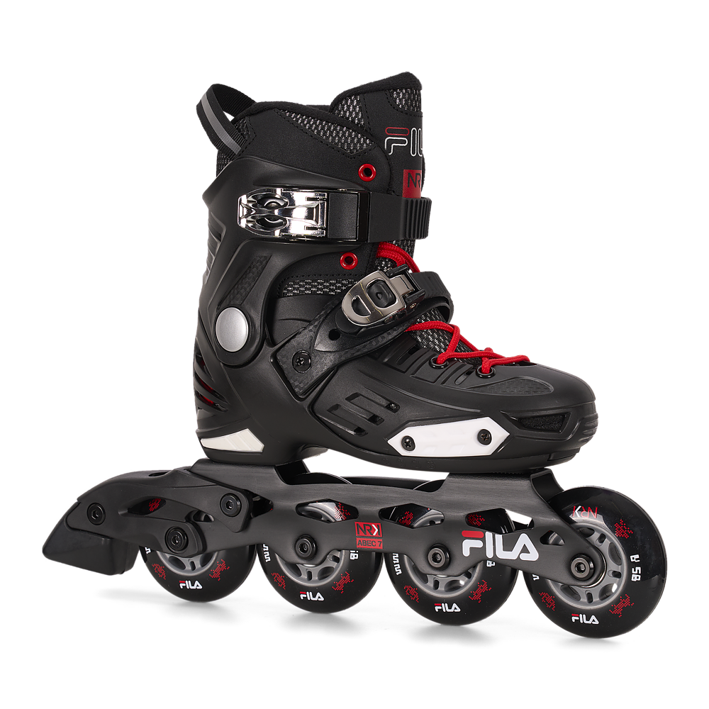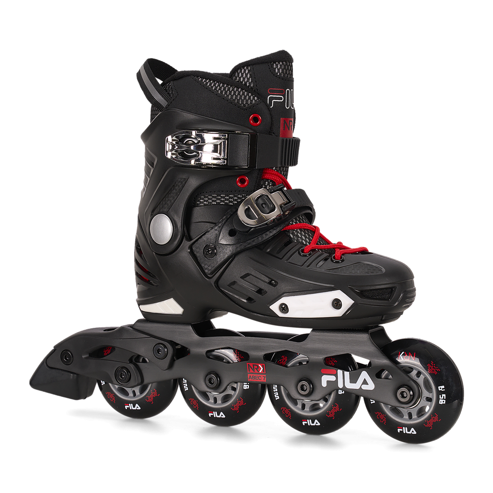 Pattina verso il successo! NRK JR è un pattino inline divertente e facile da condurre dedicato a tutti i giovani appassionati che stanno imparando a pattinare o che vogliono sperimentare trick, salti e curve mozzafiato. La calzata sportiva, lo scafo in composit e il gambetto avvolgente creano una struttura durevole e avvolgente grazie alle imbottiture anatomiche preformate che stabilizzano alla perfezione piede e caviglia e alla tecnologia Shock Absorber che sostiene il tallone e assorbe efficacemente gli urti con il terreno. La chiusura è sicura e robusta grazie ai lacci, alla leva sul gambetto e alla leva micrometrica sul collo del piede. NRK junior cresce con il piede dei più piccoli grazie a un semplice click: il meccanismo Step Jem™ di Fila Skates permette la regolazione semplice e rapida della taglia del pattino che calzerà sempre alla perfezione. Il telaio in alluminio estruso monta 4 ruote da 76mm (taglia M e L, EU 32-35 ed EU 36-39) e cuscinetti ABEC 7 per una pattinata scorrevole. Pattina verso il tuo sogno e divertiti con NRK JR!